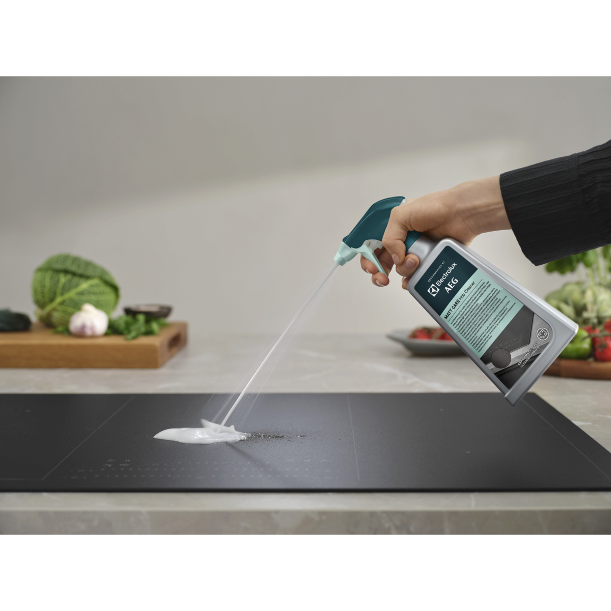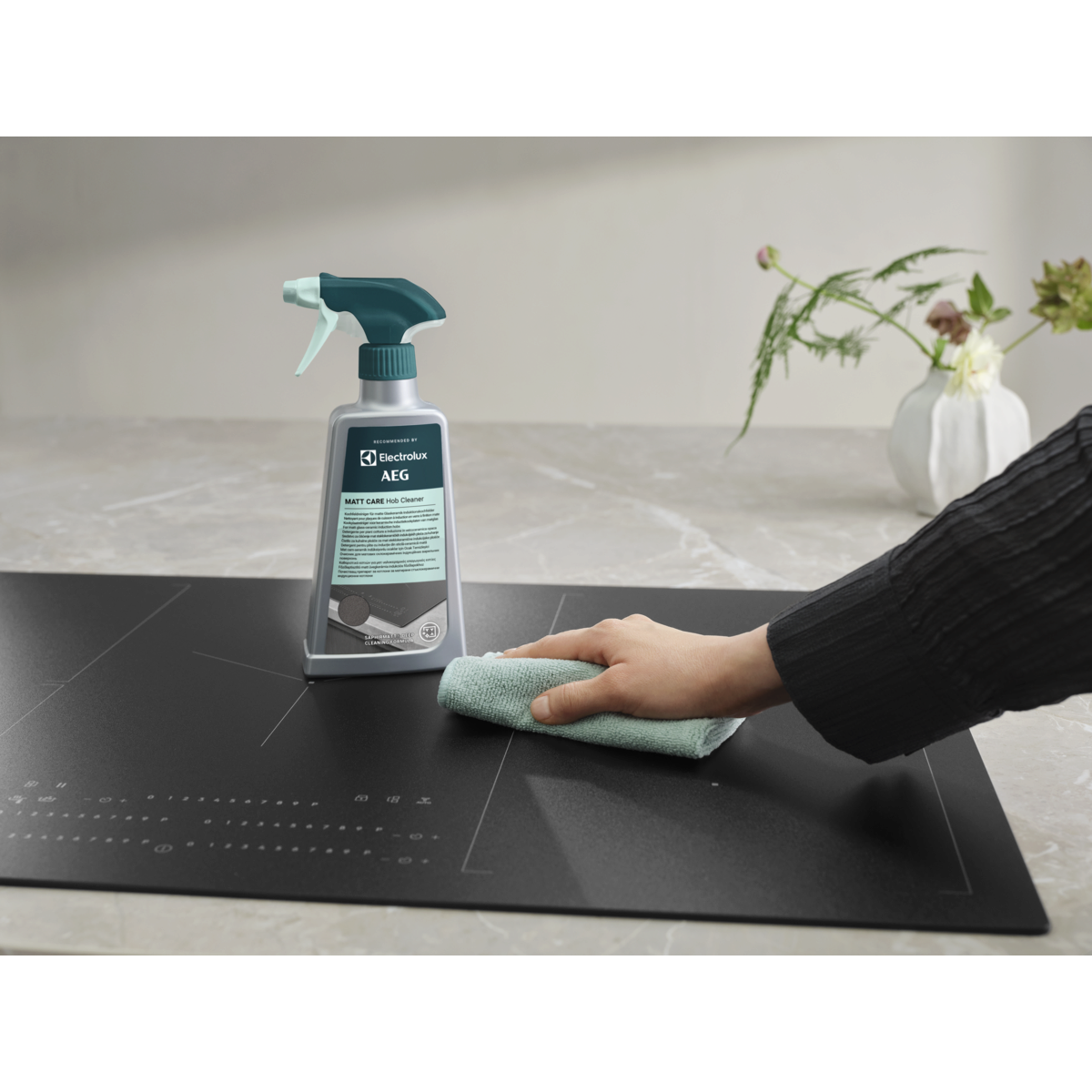 Plīts virsmu tīrītājs “Matt Care” ir speciāls dziļas tīrīšanas šķīdums matētām stiklkeramikas indukcijas plīts virsmām, tostarp “SaphirMatt®” un “SaphirMatt® SE”*. Noņemiet taukus un grūti notīrāmas piedegušu ēdienu atliekas, lai saglabātu nevainojamu plīts virsmas izskatu.