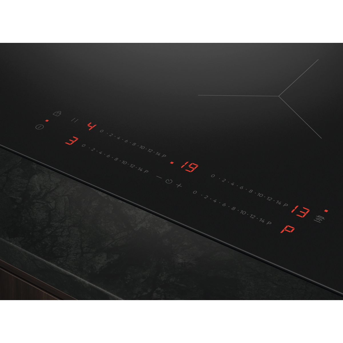 580x510 mm, 4 indukcijas zonas - 1 ar ovālu paplašinājumu, Hob²Hood, iegremdējama vienā līmenī ar galda virsmu, slīdošā vadība katrai zonai, tieša piekļuve katram cepšanas līmenim, trauka atpazīšana, Eko taimeris, jaudas pastiprināšanas, pauzes un bērbu drošības funkc., Auto-Off, jaudas ierobež.