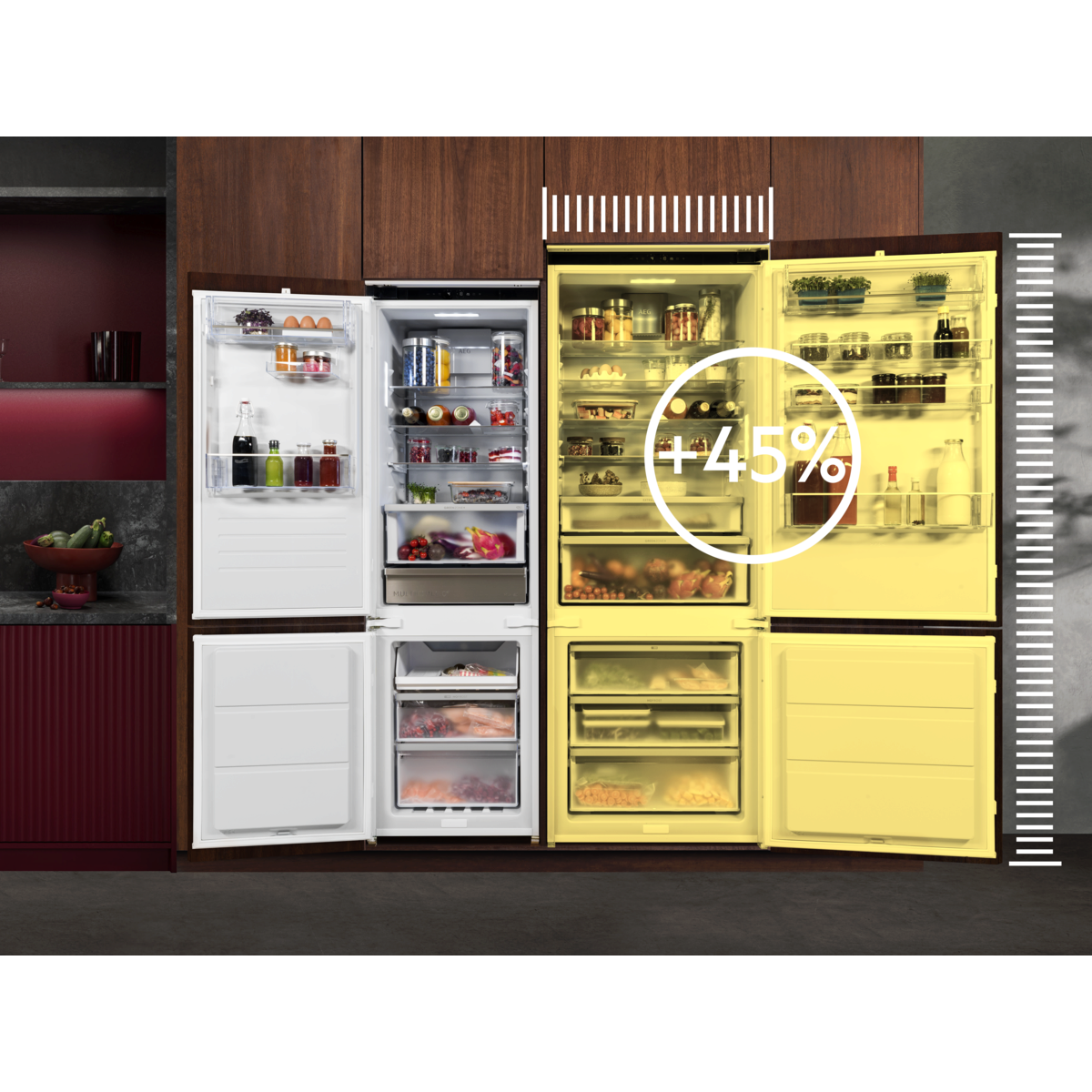Par 45% vairāk ietilpības nekā standarta ledusskapjiem*